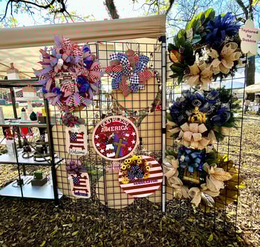 I Love my beautiful Wreath! I highly recommend Debbie's Wreaths. They are well made. Shipping was fast and packaged very well.